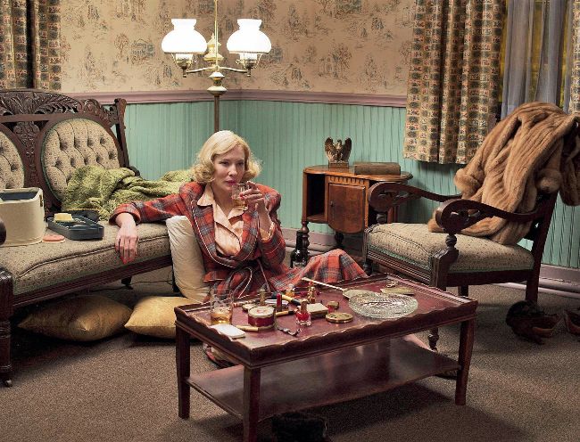 Wanting Cate Blanchett to “ooze sophistication” in her role as Carol, Sandy used a “soft, clean” colour scheme with muted tones (below)