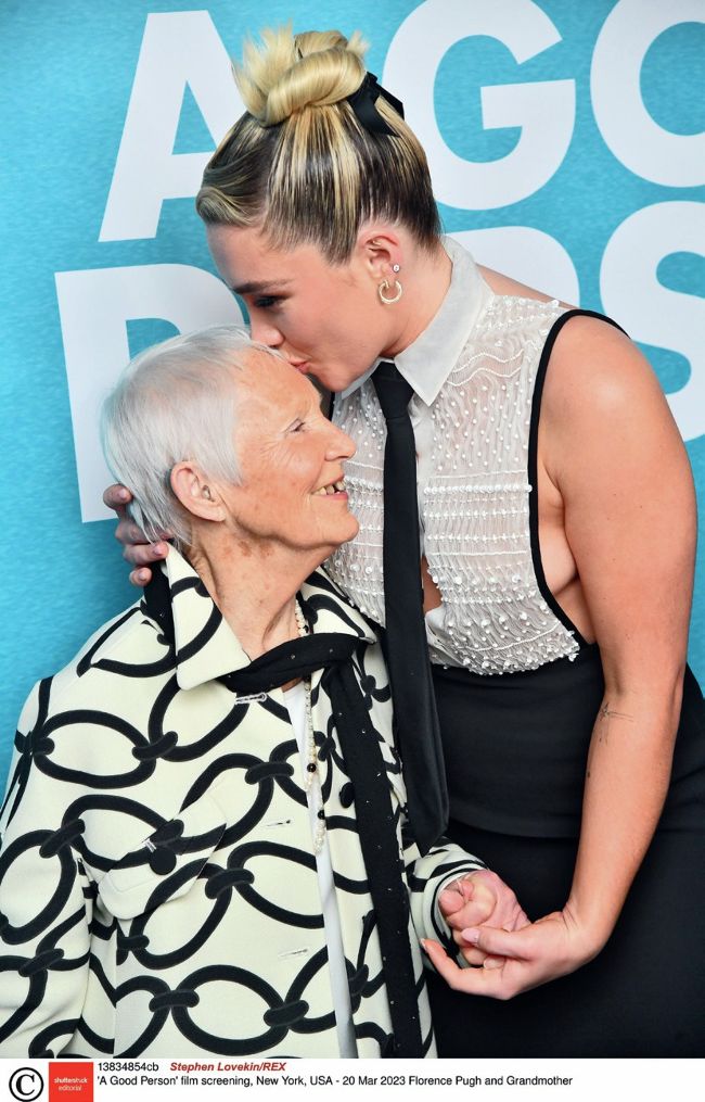 It was a family affair in New York City as Florence Pugh brought a touch of glamour to the black carpet along with her parents and grandmother, who joined her for the star-studded screening of her new film A Good Person at the Metrograph cinema in Manhattan.