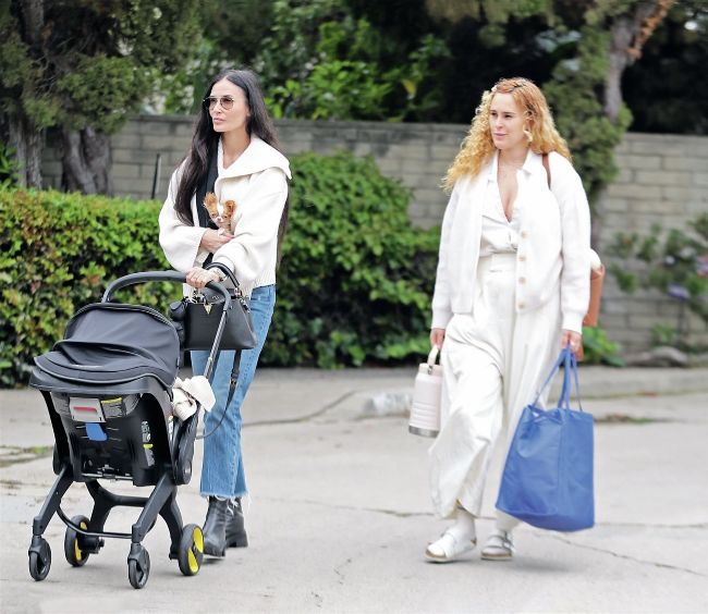 Having officially entered what she previously predicted would be her “hot kooky unhinged grandma era”, Demi Moore appeared to have had no problems adjusting to the role as she accompanied her seven-weekold granddaughter Louetta on a walk in Los Angeles. In fact, she made it look like a stroll(er) in the park.