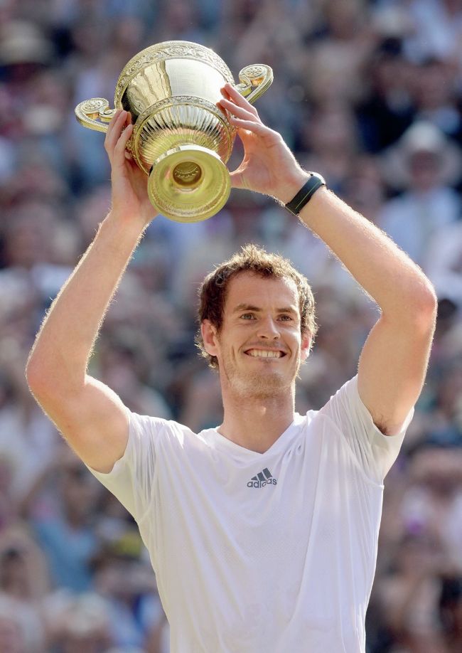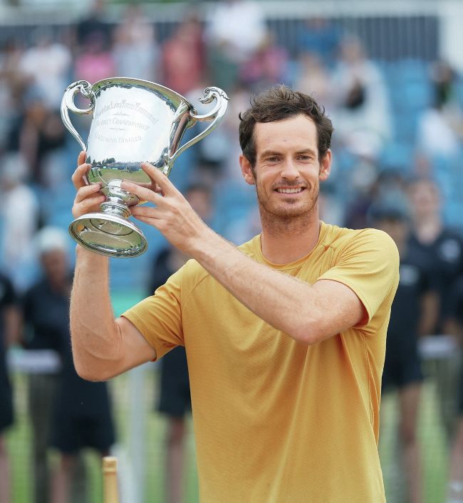 Kim’s husband Sir Andy Murray lifts the trophy at Surbiton last week (below left). His triumph was the perfect warm-up for