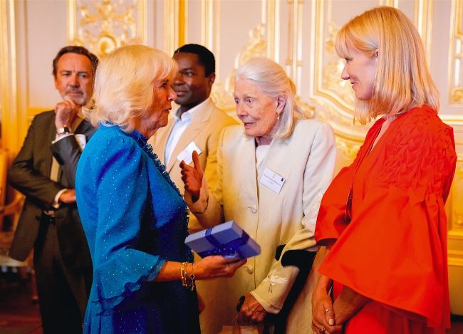 Dame Vanessa Redgrave and her daughter Joely Richardson chat to the Queen, watched by fellow actors Robert Lindsay (far left) and David Oyelowo