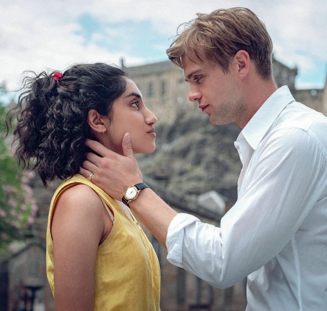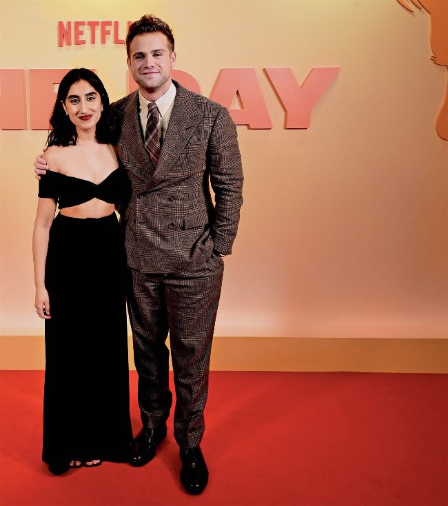 Ambika with co-star Leo Woodall at the premiere of One Day, which revisits the relationship between their characters (together below) on the same date for two decades