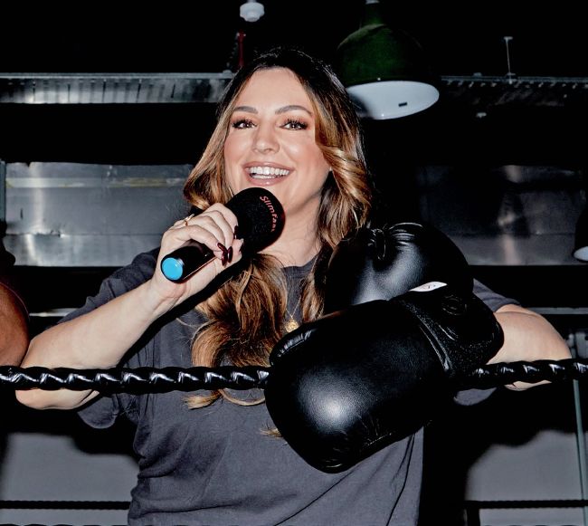 Kelly and husband Jeremy Parisi (together above) married in Italy in 2022. “He is very romantic,” she tells hello!. Kelly is an ambassador for SlimFast (left, getting fighting fit for a podcast called Life Gains, in which she features with rapper Big Narstie)