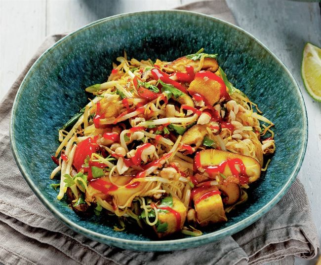 VEGAN SINGAPORE NOODLES WITH FRIED TOFU & CHILLI