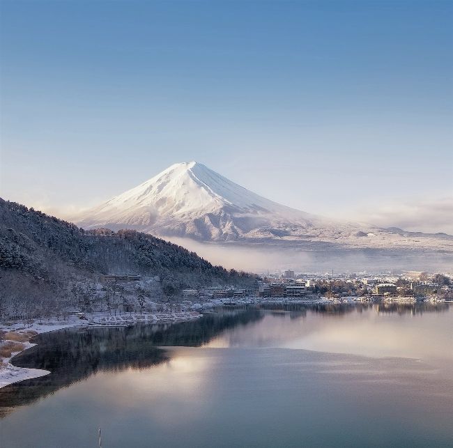 Mount Fuji crowns a snowy landscape in Japan; rustic scenes in snowy Colorado (right)