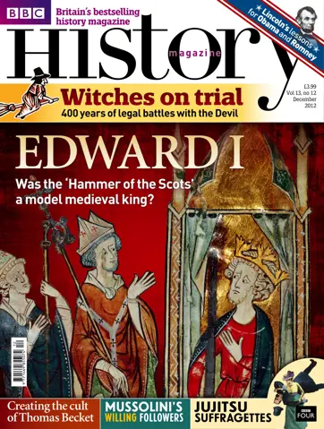 For the December issue of BBC History Magazine we tackle the reputation of one of the most controversial medieval kings: Edward I. Was the 'hammer of the Scots' in fact a model monarch? Also this month we revisit 10 prominent trials for witchcraft, find out whether Italians truly supported Mussolini, see what advice Abe Lincoln might have had for Romney and Obama, and meet the jujitsu suffragettes.