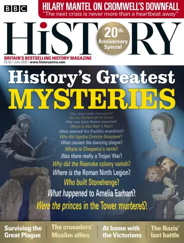 In our June issue we mark the magazine’s 20th birthday with a special feature exploring the 20 greatest mysteries in history – from the Trojan War to the Princes in the Tower. Plus: the Great Plague, the Crusades, the last battle of World War Two and an exclusive interview with Hilary Mantel.