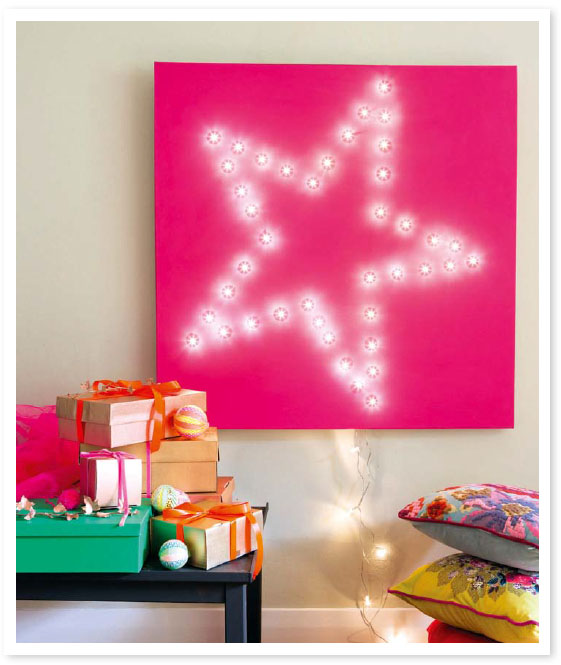 As if you need to be reminded of the star you are, who could resist making a bright starry statement like this? A really simple project, with just a few strings of LED lights, a canvas and emulsion paint – our glittery star project will brighten up any room.