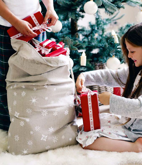 Snowflake present sack, £12.50, Cox & Cox