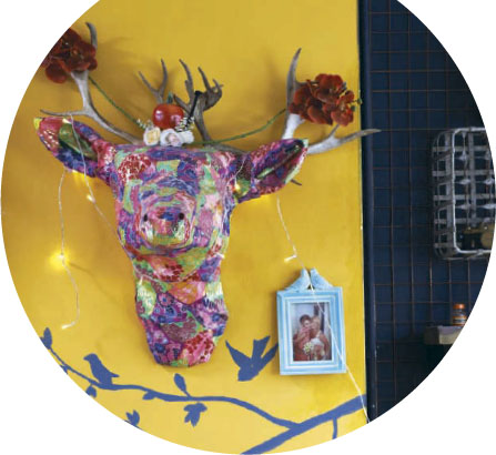 Create a talking point for your room with a wallmounted faux animal head like Rebecca’s