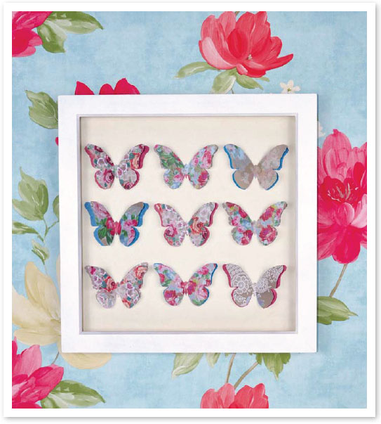 Soaring high on our to-make list is this easy butterfly box frame. Inspired by Rebecca’s, it can be whipped up in an afternoon using pretty papers