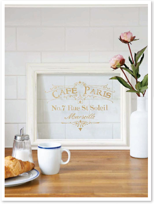 Bring a little Parisian style into your kitchen, just like Stephanie, with a super simple bistro window project using spray paint and a stencil