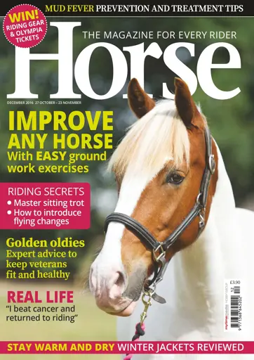 The December issue of Horse magazine (on sale 27 October) is packed with tips to boost your riding and horse care knowledge. Discover easy ground work exercises to improve your horse under saddle, overcome common winter issues such as mud fever and keep a veteran fit and healthy for longer. Plus, we review winter coats and win Oympia tickets, hi-vis jackets and riding clothing.