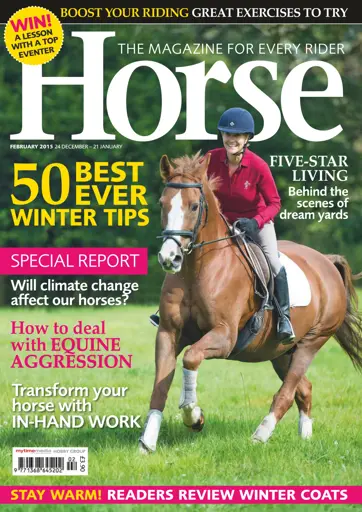 Enjoy more quality time with your horse, thanks to the 50 best-ever riding and care tips in the February 2015 issue of Horse magazine. Perfect your showjumping with our Masterclass and find out how to deal with equine aggression. Avoid being scammed with our guide to safer internet shopping, go behind the scenes at the UK's smartest yards and check out a breed profile on the Morgan Horse.