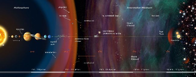 Despite being as close to a vacuum as can be achieved within our galaxy, interstellar space is far from empty. Beyond the Sun’s surrounding bubble, which is created by the solar wind, interstellar space is defined as the region of space that i no longer impacted by the outflow of material from surrounding stars.