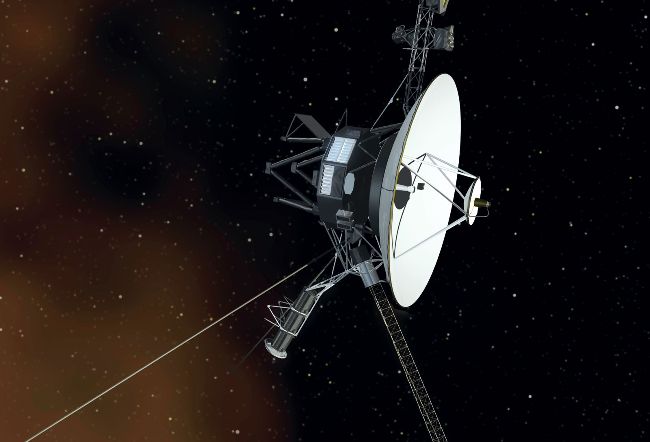 An illustration of the Voyager 1 spacecraft, which is travelling through interstellar space