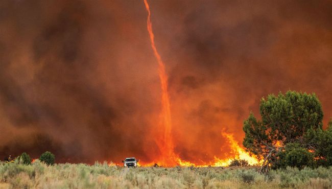 Onlookers witnessed a fire tornado rising from the flames of the Pine Gulch Fire in August 2020 in Colorado
