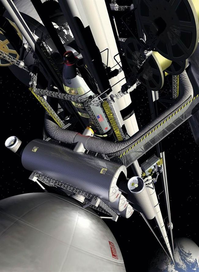 enormous ‘space elevators’ running all the way from ground level to
