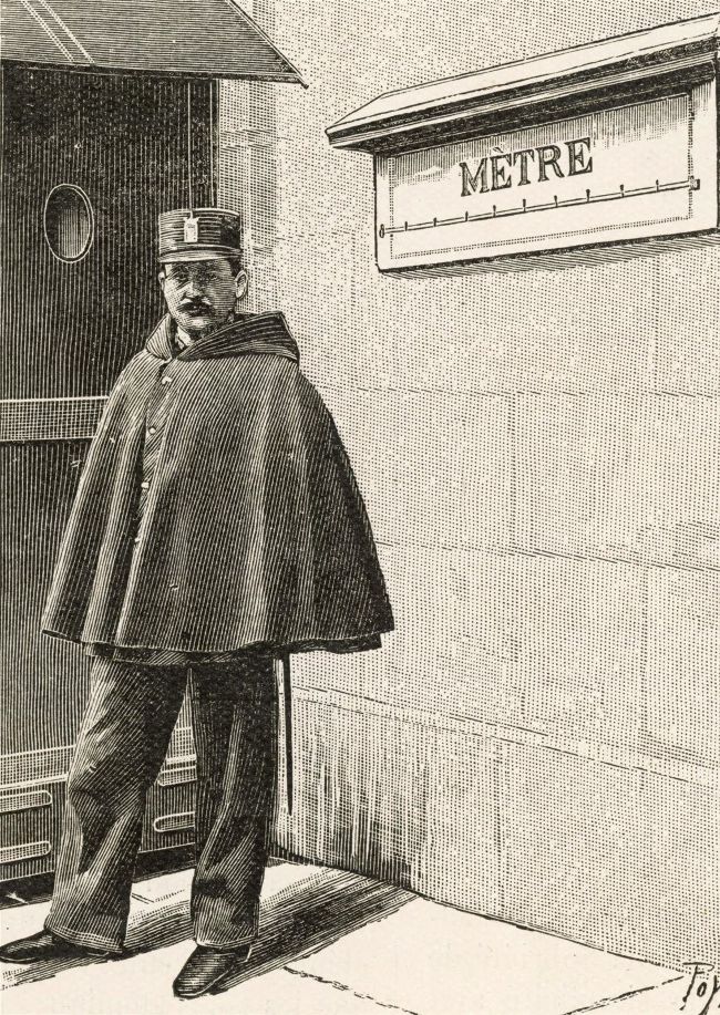 An illustration of a standard metre hanging in the Petit Luxembourg, Paris, in 1799, following the end of the French Revolution