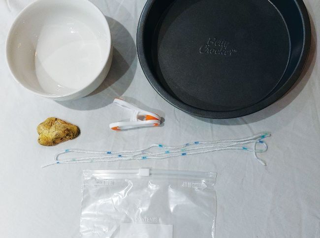 A cup or similar container will do instead of a cereal bowl, and any small heavy object could replace a stone.