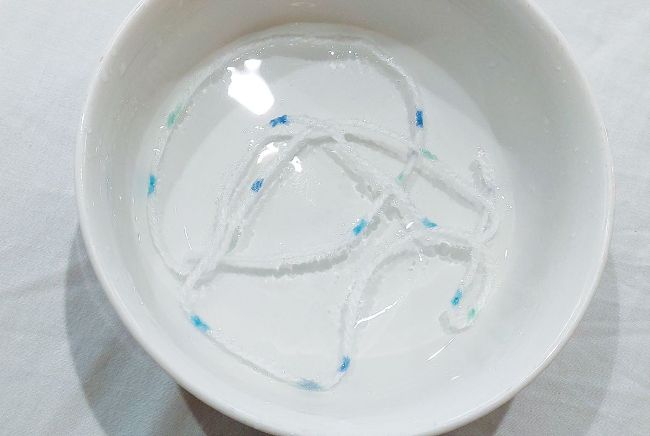 Partially fill your container with water and place the yarn into it. Allow it to soak for a couple of minutes.