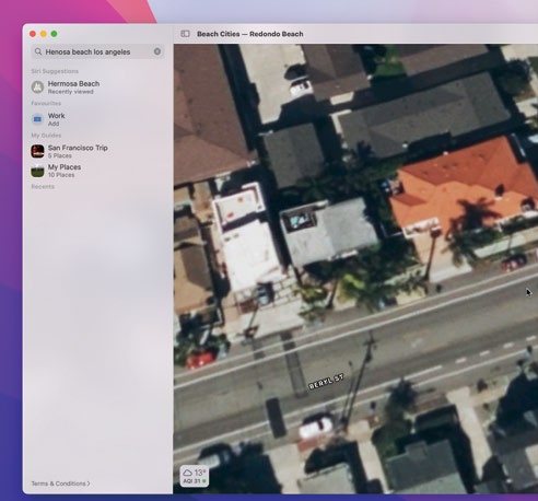 Launch the macOS Maps app and then navigate to your house, which is typically done by clicking on the arrow icon in the toolbar to jump straight to your current location. Click ‘3D’ to view it in more detail.