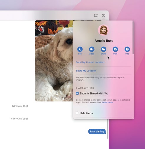 1 While in a Messages conversation thread, click on the ‘i’ icon in the top-right corner of the interface. This will give you more options for contacting that person.