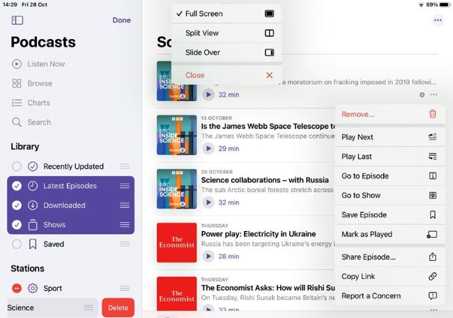 The Podcasts app on the iPad with iPadOS 16 has a customisable sidebar, and you can make it work the way you want. This makes it currently the best Podcasts app from Apple, because the iPhone Podcasts app does not have a sidebar and the Mac app’s sidebar is hardly customisable at all.