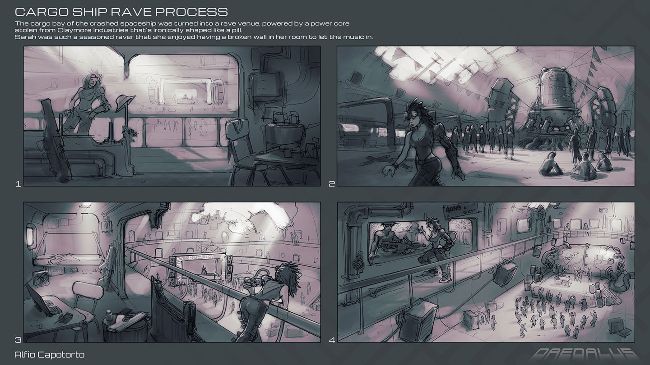 “DAEDALUS is the graduation portfolio from my studies at Syn Studio. It features environments, characters and props designed as a video game project. It’s based on a universe where music was banned on Earth, which led to a militia stealing a ship to find a new home.”