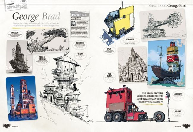 One of the Sketchbook spreads from our last issue, showing fantastic art from George Brad.