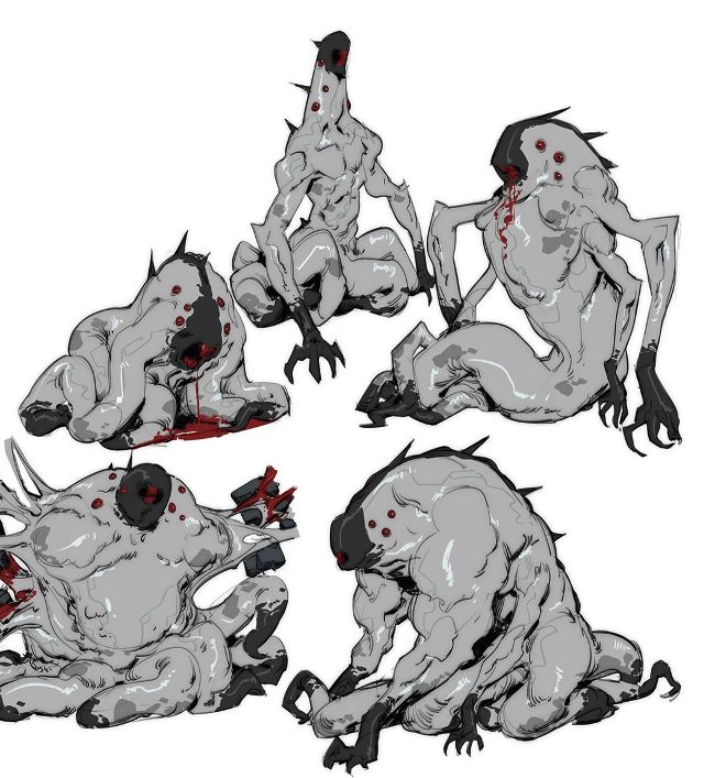 SHOGGOTHS “Some sketches of Lovecraftian shoggoths for my story. They appear out of nowhere and their physical appearance reflects a specific personality trait.”