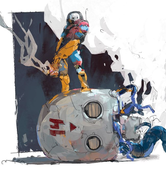 DEFEAT “A digital version of an Inktober piece, in which I discovered some exciting composition. I’m fascinated by fighting giant robots.”