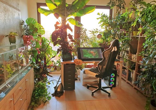Anna Podedworna’s nature-filled workspace doubles as a calming creative sanctuary.