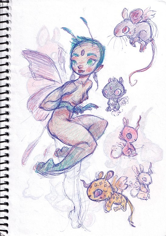 RED PENCIL “A favourite method for sketching is using red or purple pencils. I feel they bring so much life and character to my creatures.”