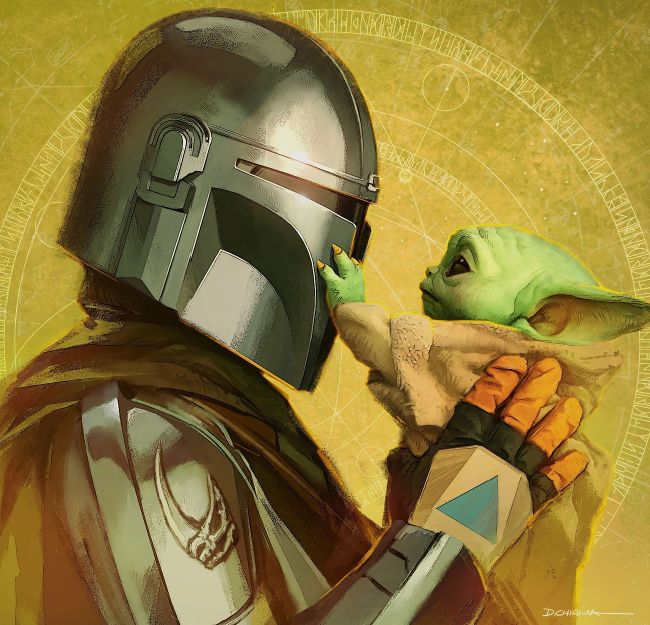 THE MANDALORIAN (2021) This piece was created for the book cover of The Art of The Mandalorian Season Two. Using Photoshop. Doug aimed to capture the central relationship of the two main characters.