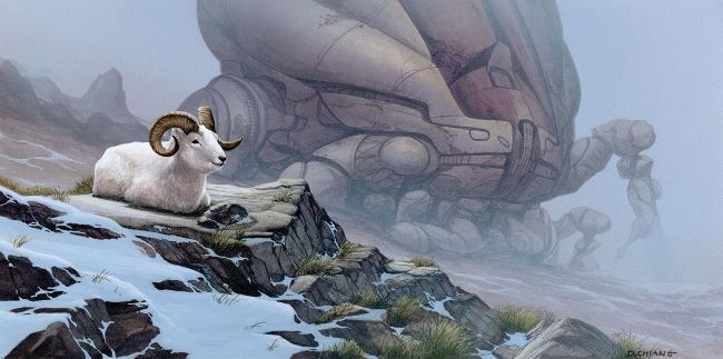 PERSONAL ART (1992) This painting combines two of Doug’s passions: wildlife and robots. Painted in acrylics, it captures his distinctive style of blending old and new, nature with technology.