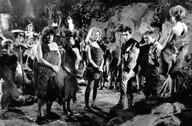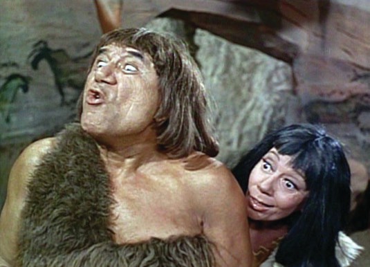Meanwhile they have to adjust to the customs of these primitives. When an angry caveman tells a woman, “Man say – woman do!” the astronauts observe, “How did we ever let that custom get away?”
