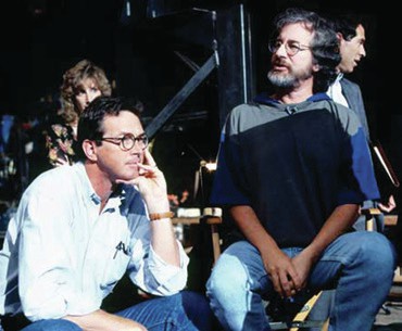Michael Crichton and Steven Spielberg on the set of Jurassic Park