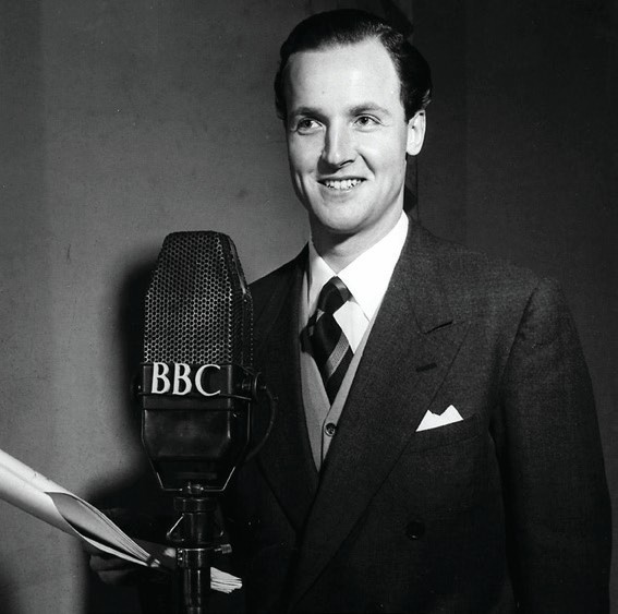 Nicholas at the BBC microphone, and with his TV chum Arthur Haynes