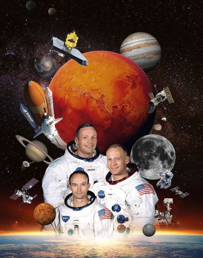 After testing spaceflight capabilities with the Gemini program, NASA started its fabled Apollo program to meet Kennedy’s target. After much planning, Apollo 8 and Apollo 10 saw astronauts fly around the Moon for the first time. Then, on 20 July 1969, Neil Armstrong and Buzz Aldrin set foot on the lunar surface. An estimated 650 million viewers watched worldwide – about one out of every six people on the planet. At last NASA had a significant Space Race victory over the Soviet Union. Two more moonwalkers, Pete Conrad and Alan Bean, left their footprints in the lunar dust before the decade was out as part of the Apollo 12 mission.