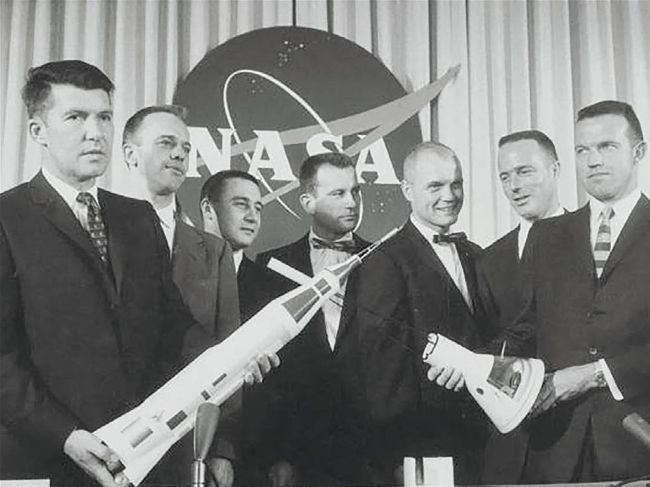 Attention quickly turned to human spaceflight with the commencement of Project Mercury. Seven potential astronauts, known as the ‘Mercury Seven’, were selected from a pool of US test pilots. Candidates had to be between 25 and 40 years old, and no taller than 5 feet 11 inches (1.8 metres). Their identities were announced to the world on 9 April 1959. A group of female candidates, now known as the ‘Mercury 13’, were not included.