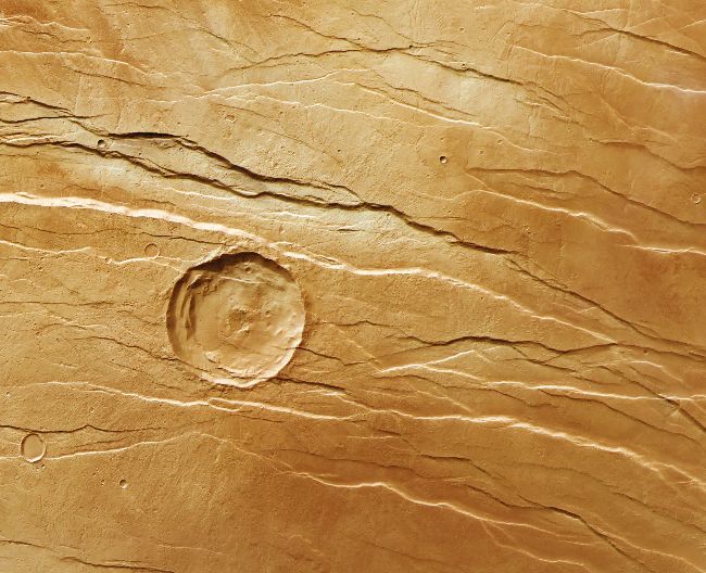 Scratches and grooves on the Martian surface look like a huge fingernail was gouging out regolith on the Red Planet, but there’s a volcanic origin to these features. Scientists believe that these faults, dubbed Tantalus Fossae, were created by the volcano Alba Mons, which is located to the west of the terrain visible in the striking new views. The images are based on data gathered by the European Space Agency’s (ESA) Mars Express mission, which has been orbiting Mars since 2003.