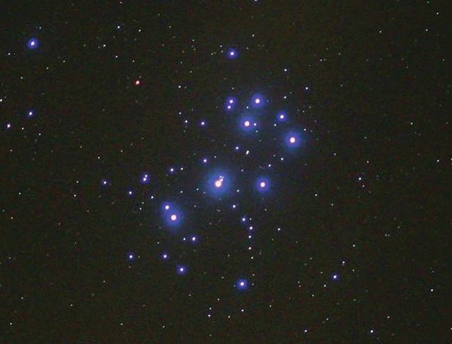 2 This 2This small, knotty cluster of icy-blue stars looks like a mini Big Dipper shimmering to the upper right of Orion. Its nickname is the ‘Seven Sisters’ because people with good eyesight can see its seven brightest members with their naked eye.