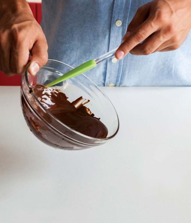 Chocolate is a poor heat conductor, so for easy melting, chop it into very small pieces first or blitz to a crumb in a food processor. This way, as much of the surface area as possible is exposed to heat. There are several ways to melt chocolate, but whichever method you find most convenient, be sure not to let it get too hot. Heating chocolate to higher than around 45°C (113°F) can destroy the emulsifying agents, commonly lecithin, which manufacturers add to make it flow and melt easily. Overheated chocolate can ‘curdle’ – the cocoa butter will start to separate from the cocoa solids – and turn grainy. Dark chocolate, being just cocoa solids, cocoa butter and sugar, can be melted and solidified repeatedly. Because milk chocolate contains milk solids, it should be melted more gently.