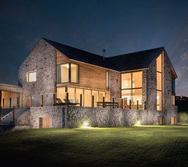 This new build in the countryside, south west of Cubert and three miles from Newquay, is the work of Laurence Associates. The house features large expanses of glass, adding wow factor to the dwelling and enabling beautiful views across Penhale Dunes – as well as allowing for sunbathed interiors throughout the day.