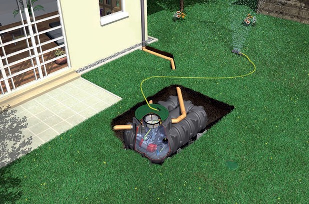 The Platin flat tank from Graf is available in sizes from 1,500 to 7,500 litres. It can be used in either garden-only or full house formats, depending on the filter and pump combination fitted