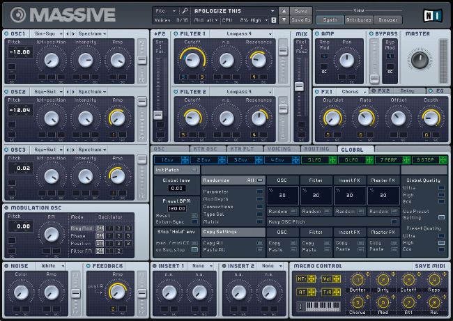 If you find your string arrangement lacks bottom end, why not fill things out in that department by doubling bass parts with a low sine wave? Logic’s Sampler’s default sine wave sample or a sine-based bass preset like Massive’s ‘Apologize This’ preset both work well for this, but blending basically anything sine wave-based in with your bass part can bolster up the low end no end.