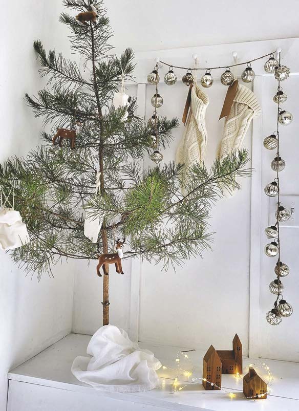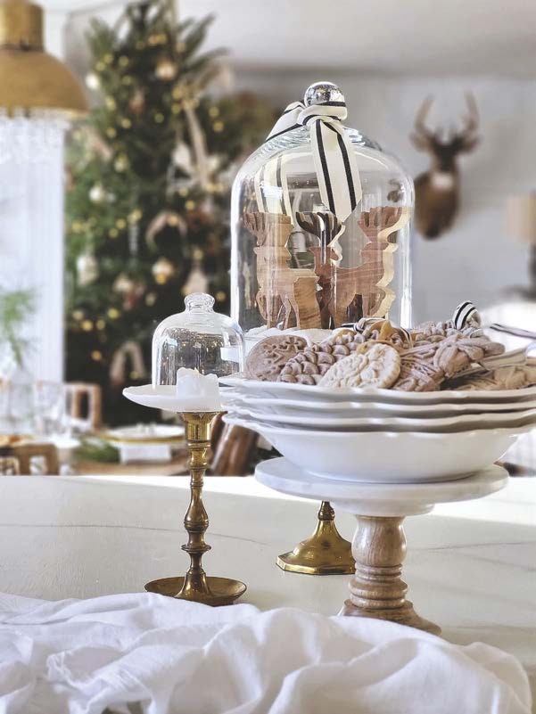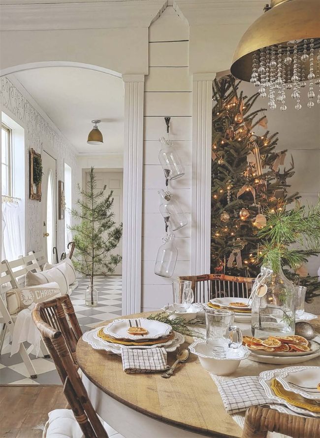 Christmas on a foothill farm nestled by the Appalachian Mountains means loads of fresh greenery in Stacie Moore’s holiday house, harvested right from the land. “Our home has an eclectic cottage twist and I love making it my own,” says Stacie, who is a decorator, homemaker and mother of four. “During the holidays, we forage on our farm for greenery to use throughout our spaces.” Swags, garlands and mini trees from their farm or other local growers, add a timeless, organic Christmas romance to Stacie’s interiors—along with an intoxicatingly fresh piney scent.