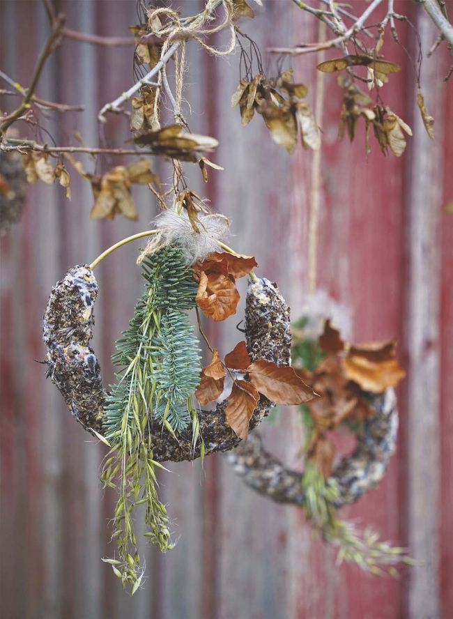 Attract and nourish feathered friends in your winter garden with homemade bird feed in pretty feeders.