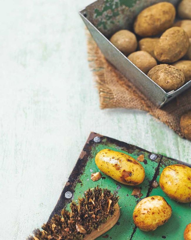 Buy jersey royals with the soil still clinging to them and take the time to clean them – they taste so much better than their pre-packed counterparts. Jersey royals can only be grown on the island of Jersey (if they’re grown elsewhere, they have to go by the less romanticsounding name, ‘international kidney potato’). Choose firm potatoes – the smaller the better.